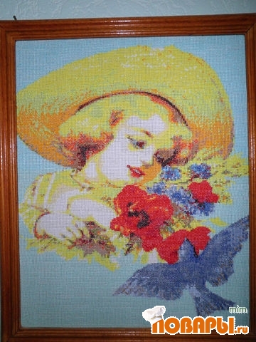 я до тортов тоже вышивала, икону маме подарила (более-менее мсерьезная работа), а малипусенькие картинки для дочурки висят над ее кроваткой, даже казать не буду - ниче особенного!