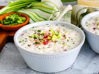 Картофель. Чтобы сделать окрошку более сытной, в неё добавляют картофель. Лучше всего варить его в кожуре - так картофель лучше режется и не рассыпается.