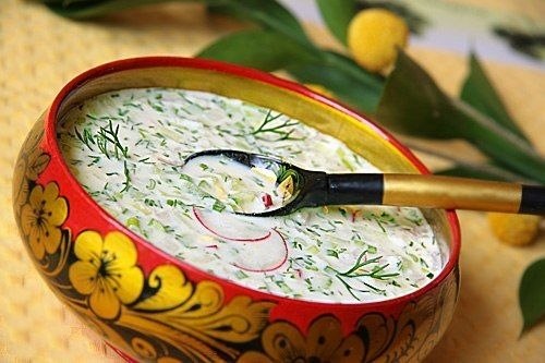 Кефир - второй по популярности вариант для заправки окрошки. Надо брать максимально свежий напиток, лучше нежирный и без каких-либо добавок. Кстати, некоторые повара предлагают смешивать кефир с квасом. Причём, если сделать это с помощью блендера, заправка получится очень нежной, кремообразной. Для окрошки также подходят любые кисломолочные продукты: айран, тан, ацидофилин, ряженка, простокваша, йогурт. Слишком густой напиток можно разбавить водой или минералкой.