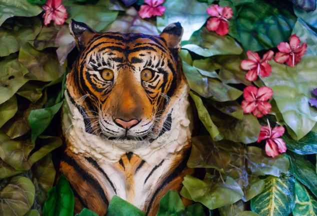 Съедобная композиция "Welcome to the Jungle/Добро пожаловать в джунгли" полна разнообразных существ, в том числе там имеется огромный крокодил с острыми как бритва зубами, слоненок практически в натуральную величину, сказочный павлин, леопарды, тигры, обезьяны, кролики, ежи и попугаи.