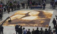 «Мона Лиза» - вечный шедевр Леонардо да Винчи, который многие креативщики пытаются «нарисовать» буквально из всего, что попадается им под руку: из чашек кофе и, собственно, из самого кофе, из драгоценных камней, из шоколада.. и есть ещё масса примеров, так сразу всего и не припомнить. Вот, кстати, ещё один шедевр - аппетитная «Джоконда» из.. поджаренных хлебных тостов.
