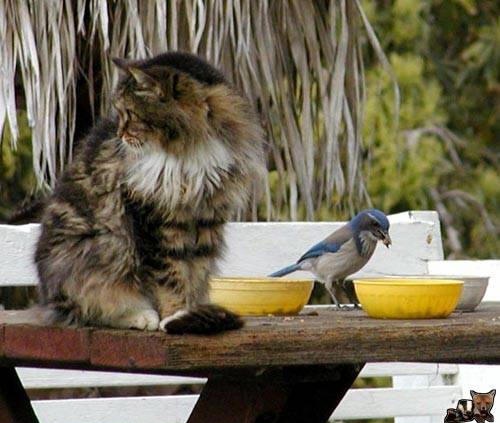 Пушистое создание, которое в силу природных инстинктов привыкло охотиться на пернатых, внезапно изменило своему обычному поведению. По непонятной причине, кошечка пожалела упавшую с дерева и потерявшую способную летать птичку и не только не съела ее на завтрак, но и по-настоящему с ней подружилась.