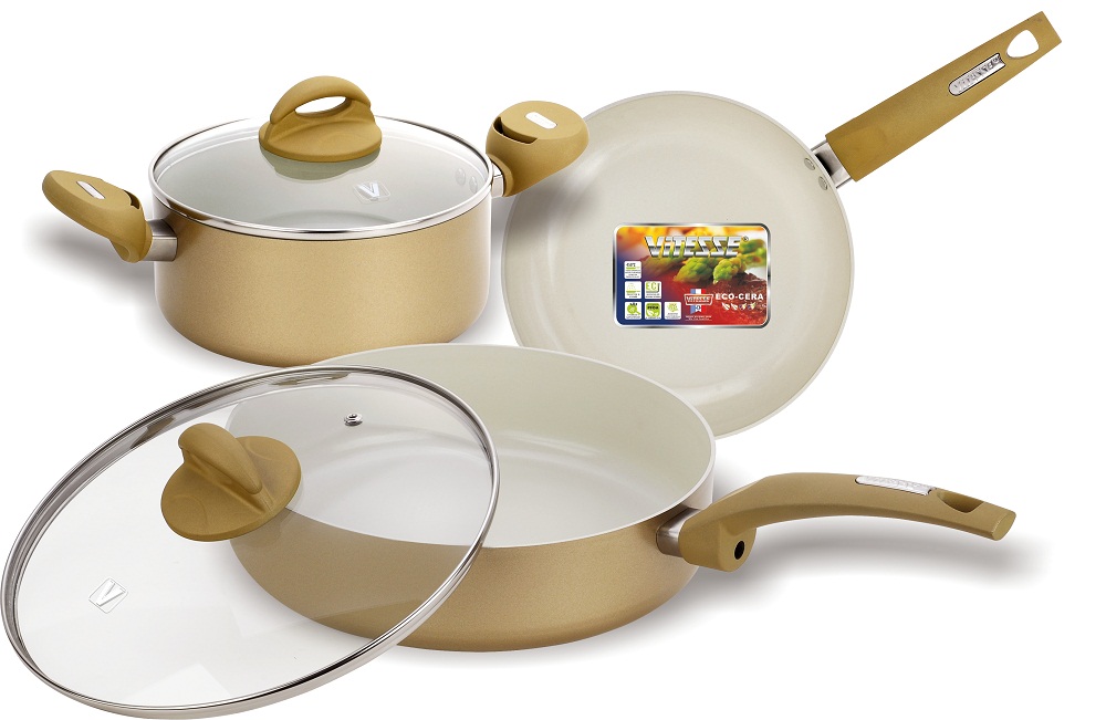 Плюсов у керамики немало. К примеру, она легко выдержит нагрев до 450 °С, в то время как посуду с тефлоновым покрытием можно нагревать лишь до 250 °С. Идеально гладкое и ровное керамическое покрытие превращает не любимый многими процесс мытья посуды в настоящее удовольствие: никаких сверх усилий - протер влажной тряпочкой, вытер насухо и готово! Недаром в Европе керамику относят к посуде категории easy-clean - легкой в уходе. Ещё одна причина, по которой посуда с керамическим покрытием пользуется такой популярностью, – это возможность готовить на ней без масла. На самом деле, масло для обжарки все равно нужно, только меньше, чем мы привыкли. И наконец, посуда с керамическим покрытием выпускается в широчайшей цветовой гамме, а яркие цвета радуют глаз и возбуждают аппетит – доказано!
