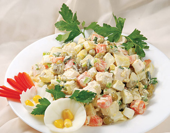 Не представляли себе советские граждане новогоднего меню и без знаменитого салата «Оливье», который по традиции изобретательные женщины СССР готовили из самых простых и доступных продуктов.