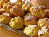 При отсутствии кондитерского мешка тесто можно выкладывать ложкой в виде круглых булочек около 5 см в диаметре. Изделия должны на противне слегка расползтись. При выпечке они хорошо поднимаются, а внутри них образуются крупные полости.