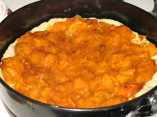 На корж выложить абрикосы, сверху посыпать сахаром. И выложить творожную начинку. Выпекать в духовке при 180 С около 35 минут. Оставить остывать торт в духовке