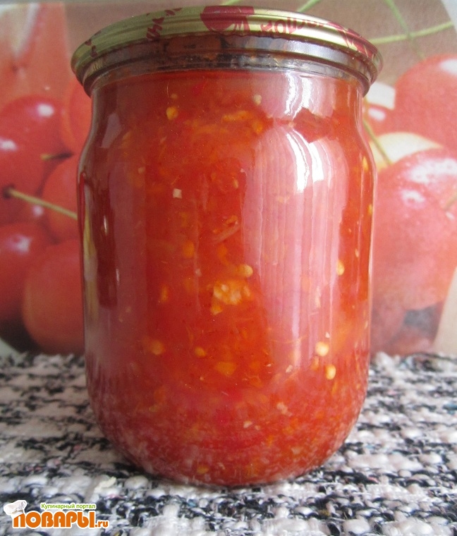 Также в это же время в этот состав нужно влить 0,5 л . подсолнечного масла и 0,5 л. уксуса. Варить еще один час. Когда аджика уже будет сварена, ее надо закатать в стерильные банки нужного объема.
