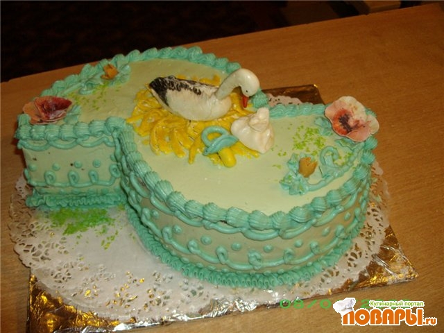 Выпал случай, приятный случай приготовить тортик. Я его не упустила. ПО случаю рождения сына у крестной моей внучки. Я решила сделать в подарок вот такой тортик.