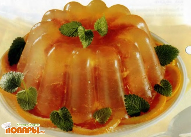 Перед подачей быстро погрузите форму в горячую воду, чтобы облегчить извлечение желе, и опрокиньте его на блюдо. Украсьте несколькими листиками мяты.