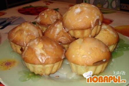 Потом этой глазурь поливаем готовые маффины. Она очень быстро застывает.