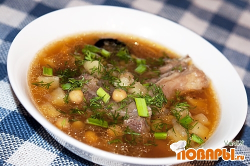 Мне очень понравился этот суп, необыкновенно сытный, вкусный и ароматный! В оригинале, суп Азербайджанский суп Пити готовиться в порционных глиняных горшках, а вместо картофеля - каштаны. Пришлось немного упростить рецепт, вы можете сделать еще проще, у кого нет баранины - заменить на не очень старую говядину на косточках. У меня небыло ребер, зато была свежая корейка, которую я порубил на куски, возможно такой вариант даже лучше ребер, от курдюка я отказался, так как корейка была с достаточно толстыми жировыми прослойками.
