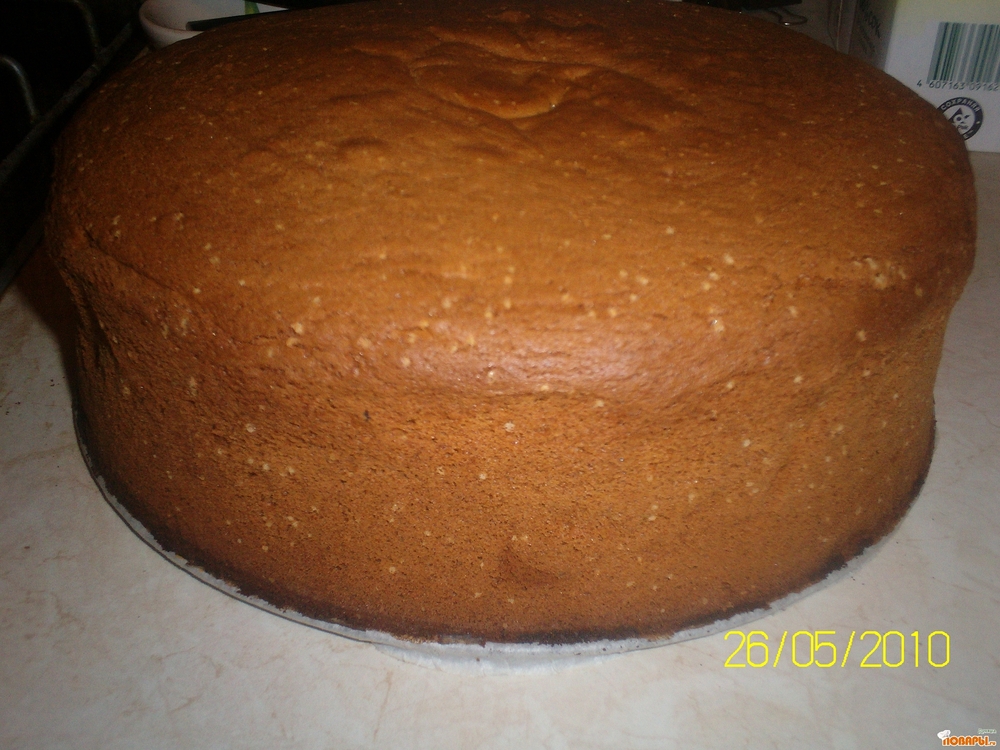 Корж остудить, разрезать на 5-6 слоев и прослоить любимым кремом.