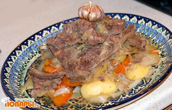 Включаем на средний огонь, и ждем минут 15 пока все закипит, как закипит - убавим огонь до слабого. Готовится будет минут 70-90, зависит от качества мяса.