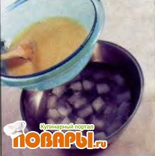 Перелейте крем во вторую миску, пропустив его через мелкое ситечко, и погрузите миску в воду со льдом, чтобы остудить, размешивая, пока крем полностью не остынет.