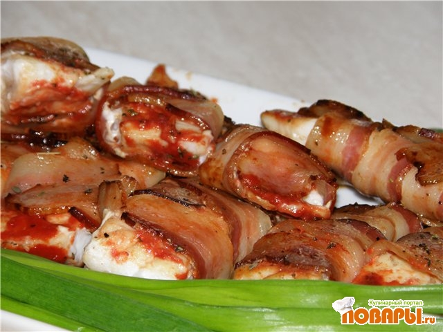 Белая рыба в беконе
