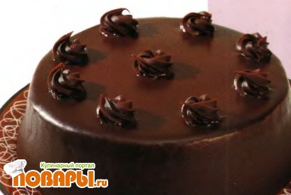 Разогрейте на водяной бане глазурь «Опера», пока она не станет жидкой. Вылейте ее на торт, равномерно распределяя лопаткой сверху и с боков. Поставьте на 30 мин в холодильник для застывания.