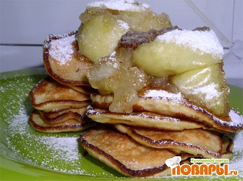 Блинчики: растопить слив. масло и остудить. В миске смешать муку, разрыхлитель и сахар. Добавить яйца, мед и молоко, миксером вымесить до однородной массы и влить растопленное слив.масло.