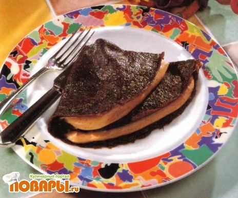 Испеките 10 блинчиков с какао, используя рецепт засахаренных каштанов в шоколадном мешочке, который уже приводился. Поставьте их в теплое место.
