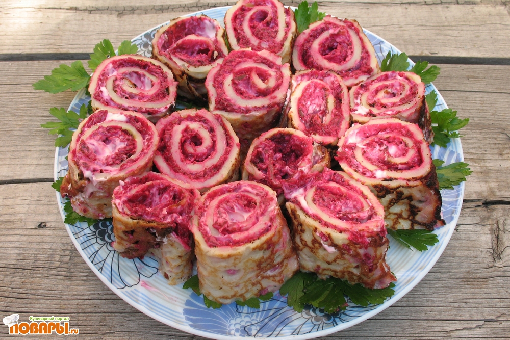 Мне понравилась идея начинки со свеклой. Я смогу ее под наш рацион адаптировать. Да и блинчики я постные периодически пеку, но фарширую обычно тушеной капустой. Свеклой и зеленью будет интереснее (еще и с постным майонезным соусом). Только сыр придется исключить совсем:) , разве что я созрею приготовить когда-нибудь веганский на орехах или семенах...