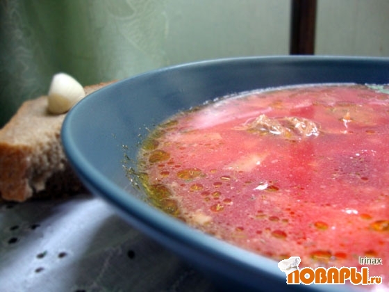 Основой любого борща является КОСТНЫЙ бульон. Можно использовать грудинку, ребрышки.