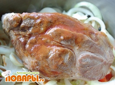 Плотно закрываем крышкой и ставим в духовку часа на 2 с температурой 200* С. Примерно каждые полчаса переворачиваем мясо, проверяем готовность.