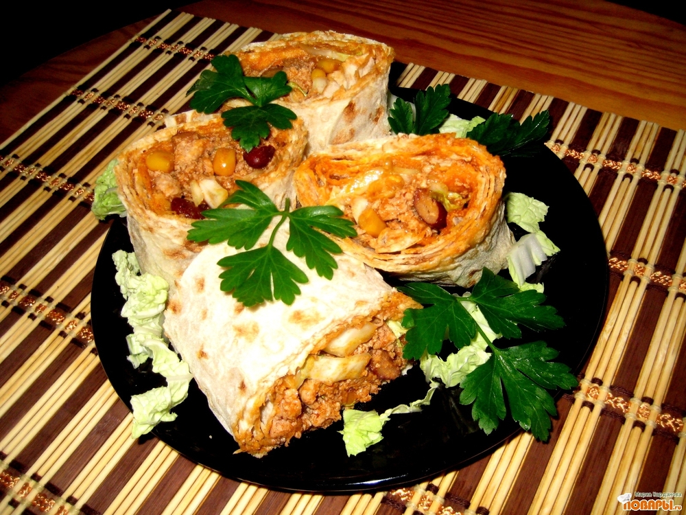 Все пустые концы обрежьте, чтобы рулетики получились одинаковыми с обеих сторон, посыпьте зеленью) :)