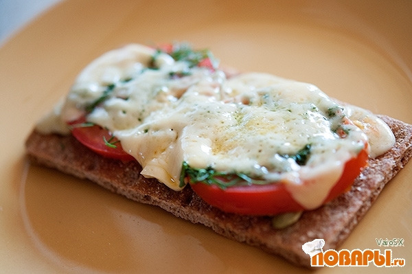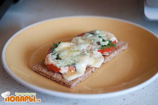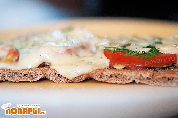 Перед тем, как это сделать, можно смазать хлебец оливковым маслом, так будет еще вкуснее.