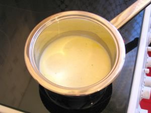 Следом добавить сметану, довести до кипения. Соус вылить в форму.