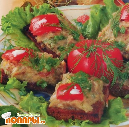 Берем ломтик черного хлеба и обжариваем на растительном масле, далее нужно остудить его.