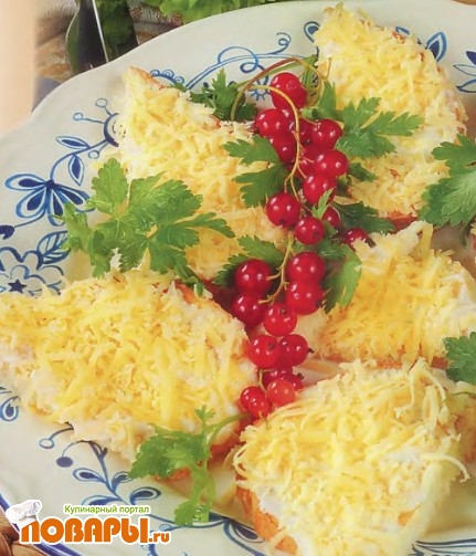 Украсить бутерброд зернами граната и веточкой петрушки.
