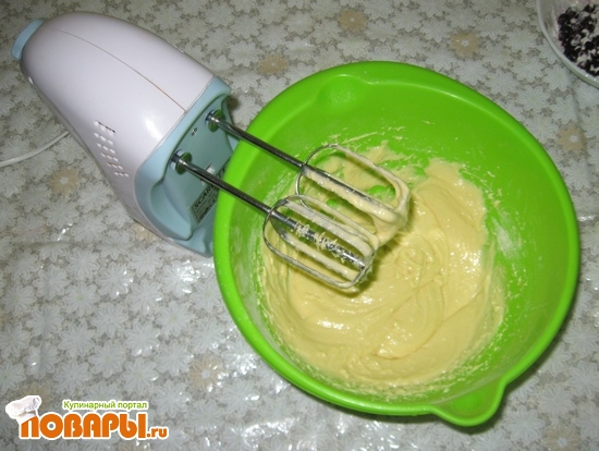Отделим желтки от белков, разотрём их с сахаром. Добавим к полученной смеси яйцо и перемешаем.