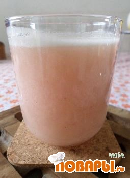 В блендер положить стакан полученной каши долить воды до получения 1 литра или чуть меньше, в зависимости от емкости блендера, взбить и процедить, повторить процедуру с остальной кашей. Напиток должен быть не очень густой, скорее довольно жиденький, иногда надо добавить еще сахара, зависит от сладости ананаса. Подавать охлажденным.