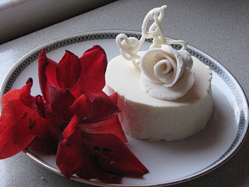Взбиваем творог со сливками и сахаром, вводим предварительно замоченный желатин. Все тщательно взбиваем, переливаем в форму и ставим в холодильник, чтобы остыло.