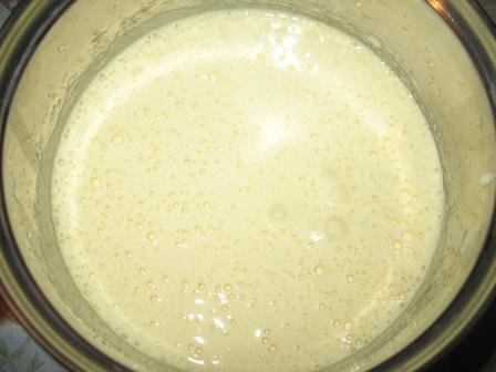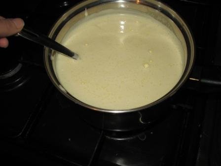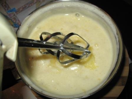 Варить при постоянном помешивании до загустения. Снять с огня. Добавить сливочное масло. Взбить хорошо миксером.