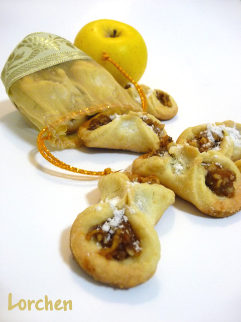 Начинка: яблоки очистить от кожуры и семян, натереть на крупной терке, смешать с сахаром, корицей и мёдом. Потушить на сковороде 5 минут. Когда остынет, добавить орехи, перемешать.