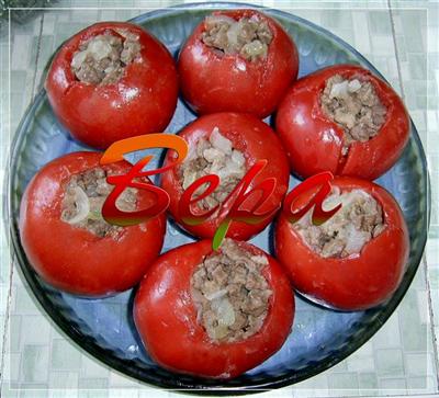 Вынуть внутренности ложечкой( аккуратно чтоб помидор не лопнул).