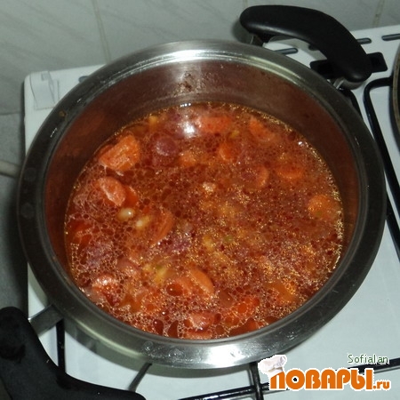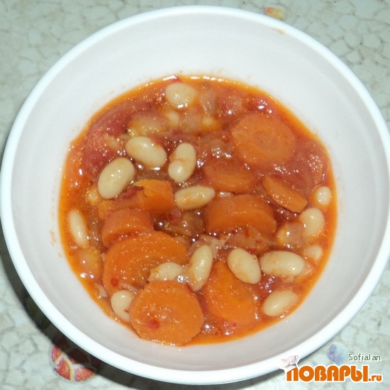 Фасоль для приготовления по этому рецепту можно брать и свежую, но тогда ее нужно замачивать в воде на 3-5 часов. Если берете консервированную, то не в томатном соусе.