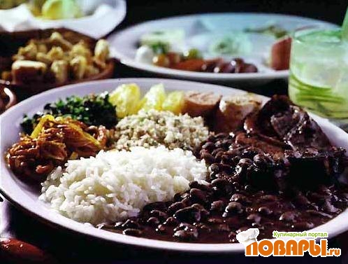 Соединяем с фасолью и оставляем тушить еще на 20-30 минут. Достаем мясо и убрав весь жир мелко нарезаем его. На большой тарелке раскладываем мясо с одной стороны, фасоль с другой.