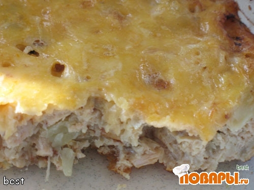 Сыр потереть и добавить в яйца. Залить яичной смесью капусту с курицей.И поставить в духовку на минут 15. Пока сыр не расплавится.