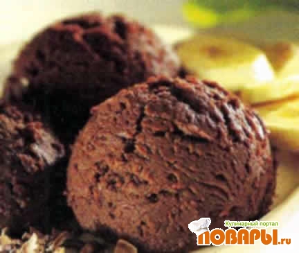 В кастрюле вскипятить воду и развести в ней сахар, влить растопленный шоколад, через ситечко всыпать в смесь какао. Размешать до однородной массы. Дать остыть и поместить в морозилку; В течение 3 часов каждые 30 минут взбивать массу.