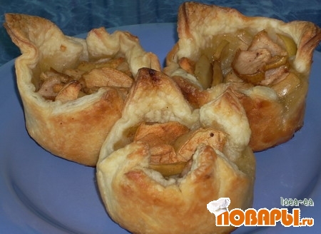 Получившееся тесто раскатываем тонким пластом, нарезаем на квадратики и укладываем каждый квадратик в форму для мини-кексов или маффинов.