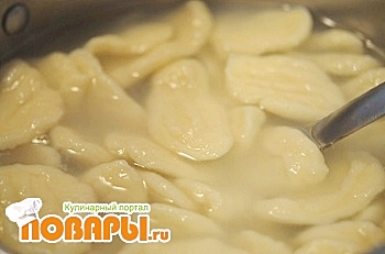 Таким образом наделываем нужное количество. Кладем в кипящую воду и варим приблизительно 8-10 минут. Пока они не поднимутся на поверхность.