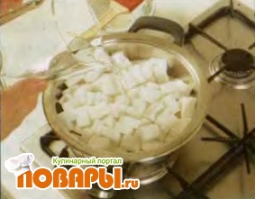 Поместите в кастрюльку часть плавленого сахара и дайте ему размягчиться на водяной бане, постоянно помешивая.