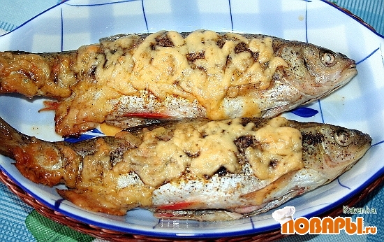 Сыр натираем на крупной терке и присыпаем рыбу сверху.