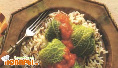 Листики разложить, выложить в них сырно-чечевичную смесь. Сложить листья с обеих сторон к центру, свернуть рулетиком и обвязать кулинарной нитью. Рулетики обжарить в растительном масле. Добавить нарезанную капусту, влить бульон, поперчить и посолить. И оставить тушится с закрытой крышкой 10 минут.