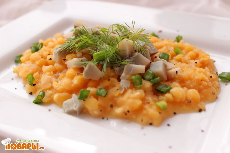 Делали похожее пюре из чечевицы (Мистраль "пардина"), но в него добавили оставшийся фарш от постных мант (картофель, лук и тыкву), вышло очень хорошо. Картофеля было чуть-чуть, а тыквы много. Картофель разварился в пюре, каша получилась очень мягкой. Деть сначала устроил забастовку, совсем забыл вкус чечевицы, а потом распробовал и слопал всю порцию.
