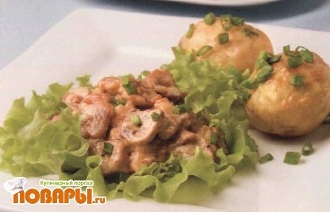 Готовьте грибы 5-7 минут. При подаче выложите грибы на блюдо, выстеленное листьями зеленого салата, посыпьте рубленой зеленью. Гарнируйте вареным или запеченным картофелем.