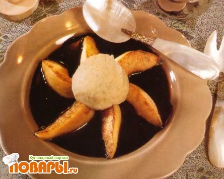 Груши в шоколадной подливке с мороженым