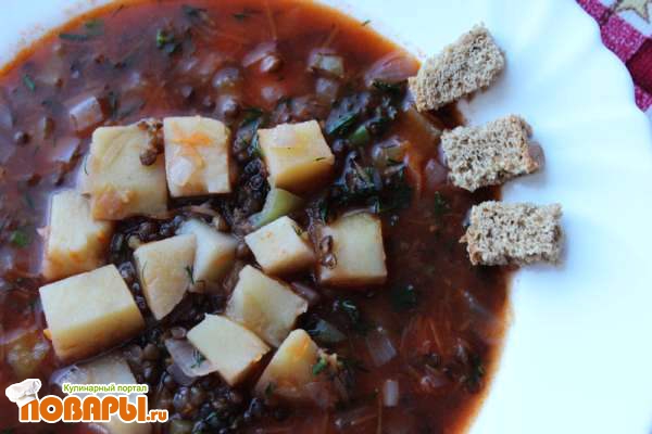 Густой суп с черной чечевицей и картофелем (постный)