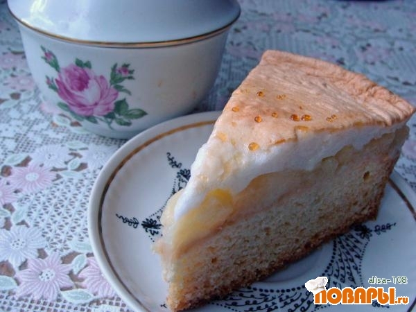 Нагреваем духовку до 180 градусов. Хорошенько смешиваем все ингредиенты для теста. Выстилаем дно и стенки формы. Выпекаем тесто примерно 20 минут, пока тесто слегка не подрумянится. Тем временем готовим начинку. Тушим яблоки на среднем огне в воде с сахаром, примерно 5 минут.